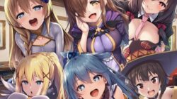 アヘ顔 このすば3人娘がエロ罰ゲームでアヘ顔セックス! デカチンかずまハーレム孕ませ【d_748487】【撮影記録イラスト係】